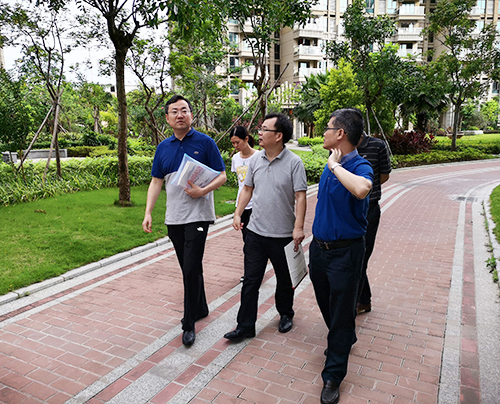 李鹏副总经理一行来到松湖朗苑项目现场,实地考察松湖朗苑园区、地下停车场,了解车位销售进展、幼儿园移交等情况,听取了东莞公司卖力人相关事情汇报。
